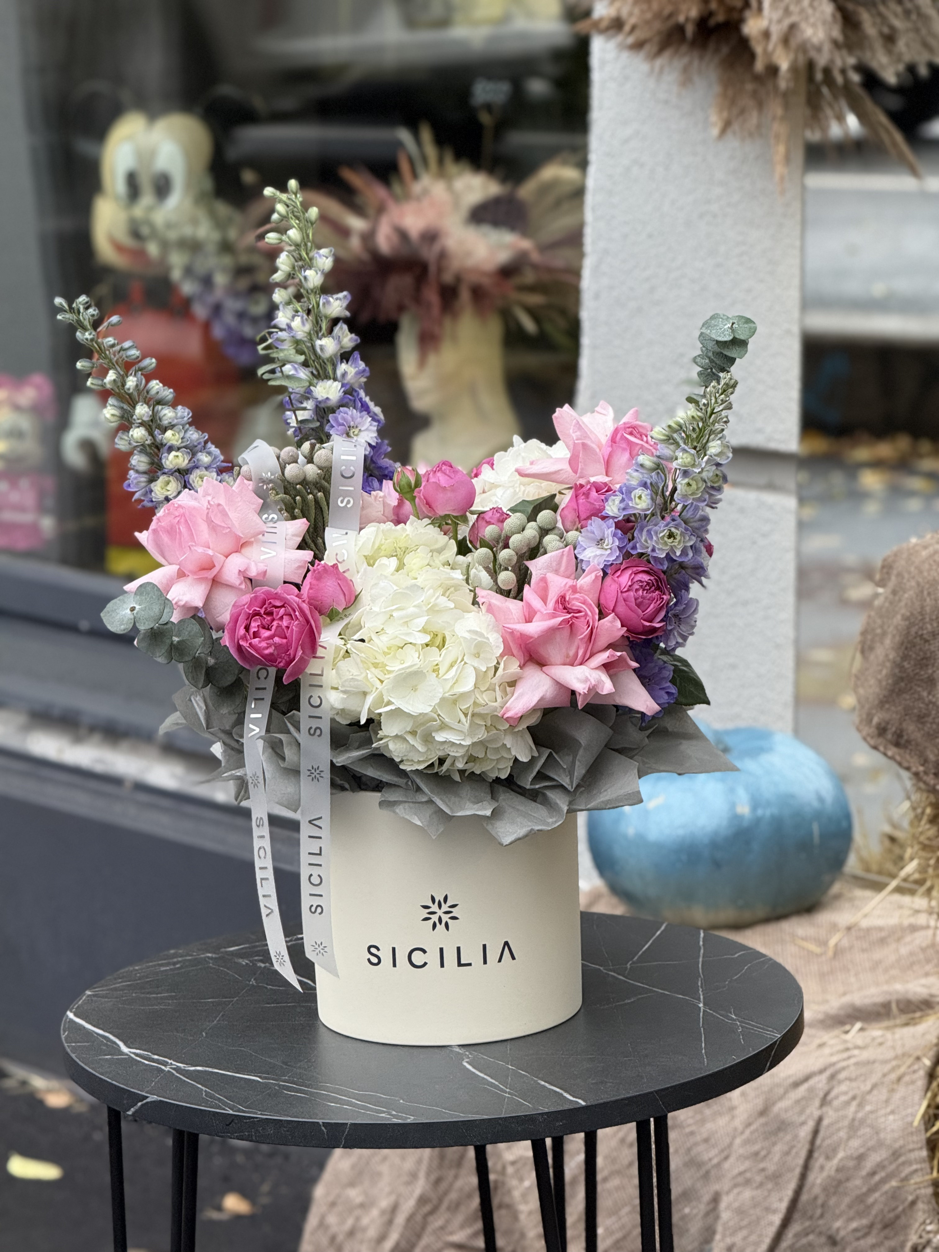 Все букеты собираются подобными, с сохранением стилистики и цветовой гаммы.