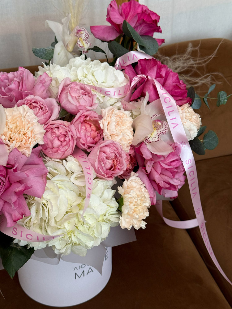 Все букеты собираются подобными, с сохранением стилистики и цветовой гаммы.