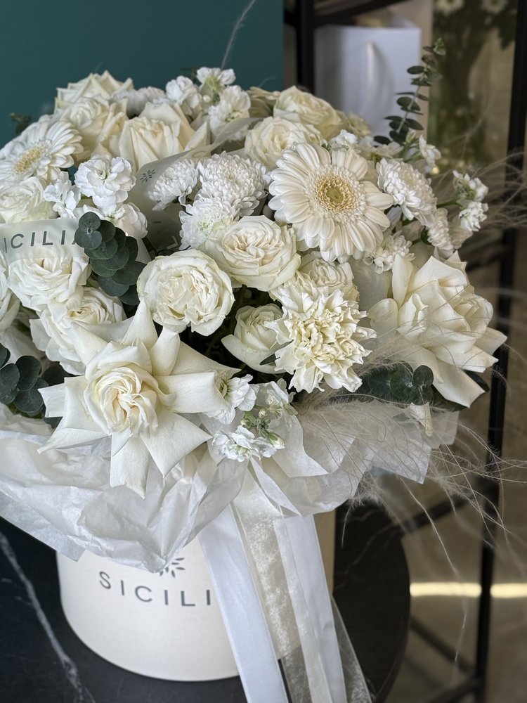 Все букеты собираются подобными, с сохранением стилистики и цветовой гаммы.