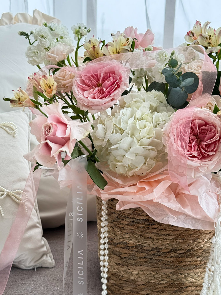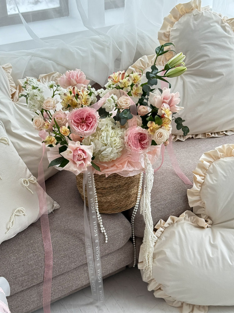 Все букеты собираются подобными, с сохранением стилистики и цветовой гаммы.