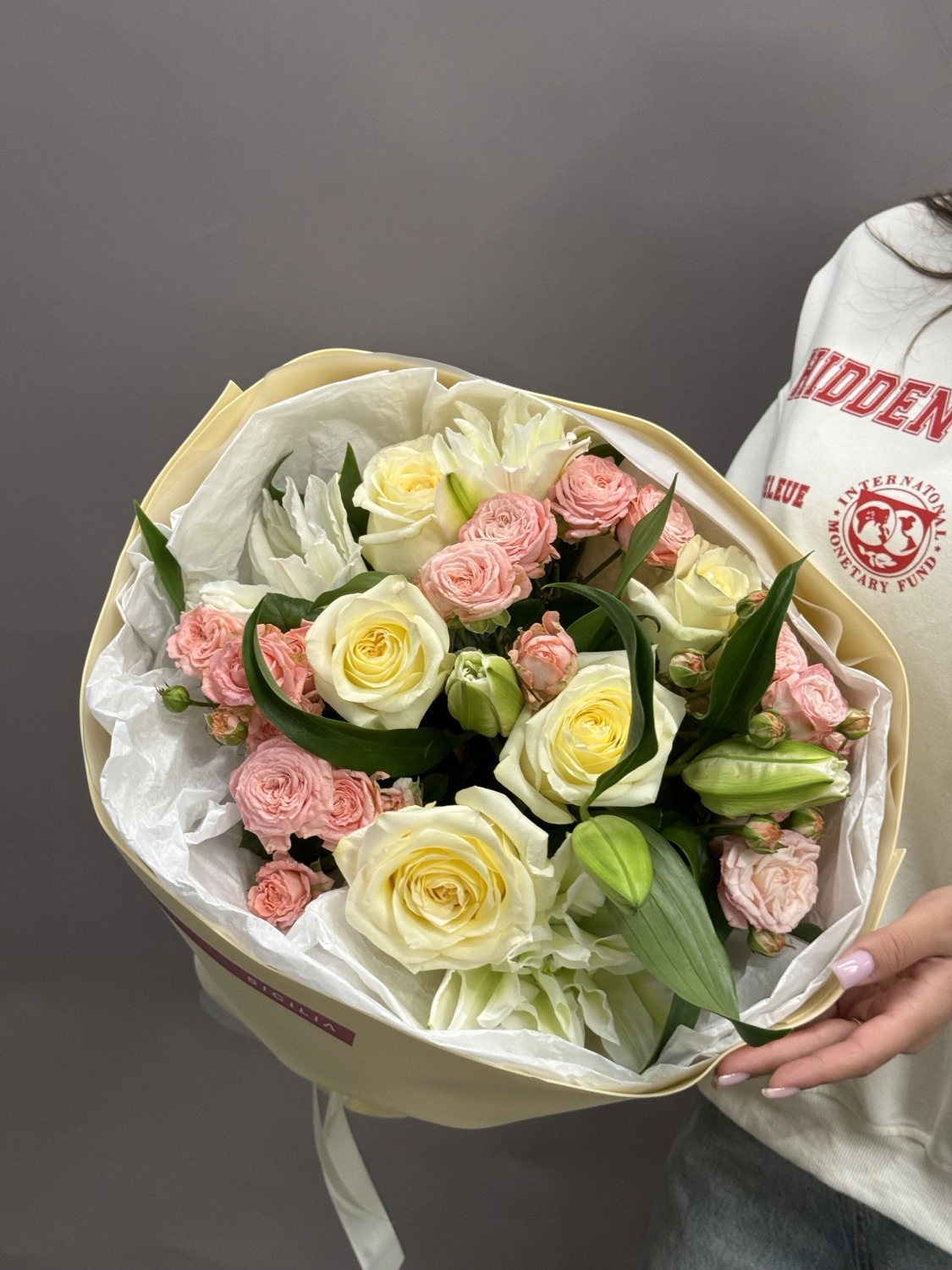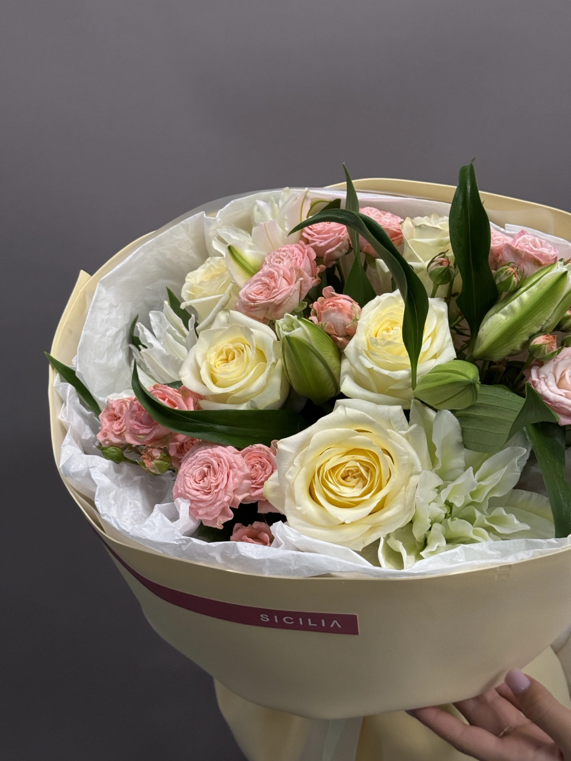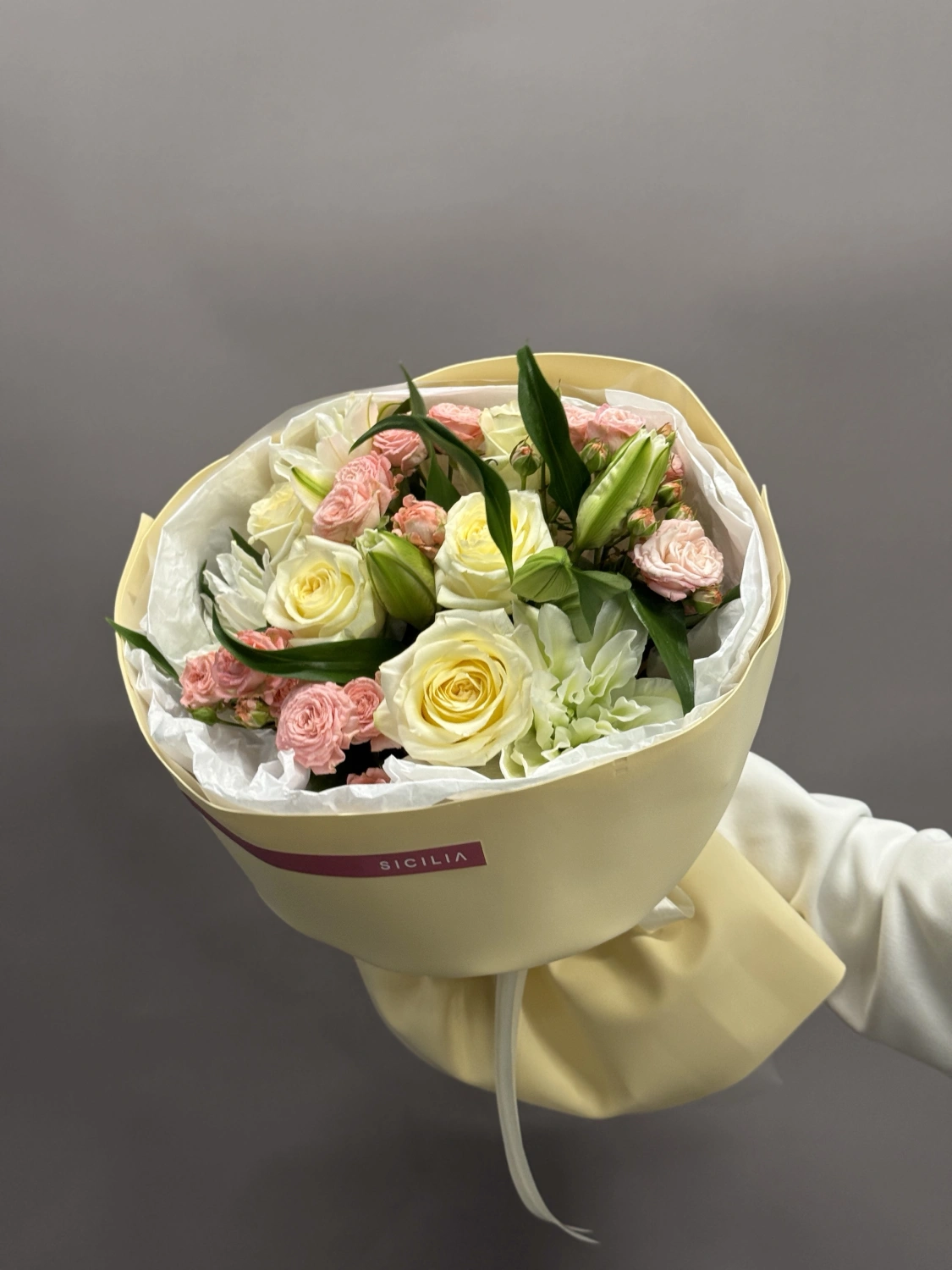 Все букеты собираются подобными, с сохранением стилистики и цветовой гаммы.