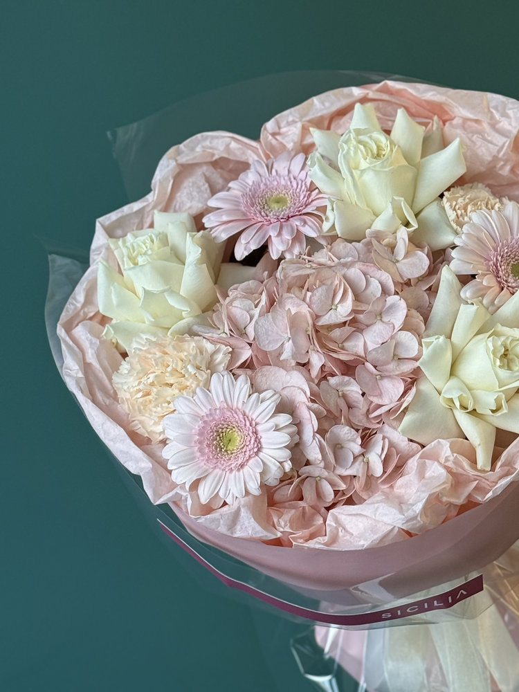 Все букеты собираются подобными, с сохранением стилистики и цветовой гаммы.