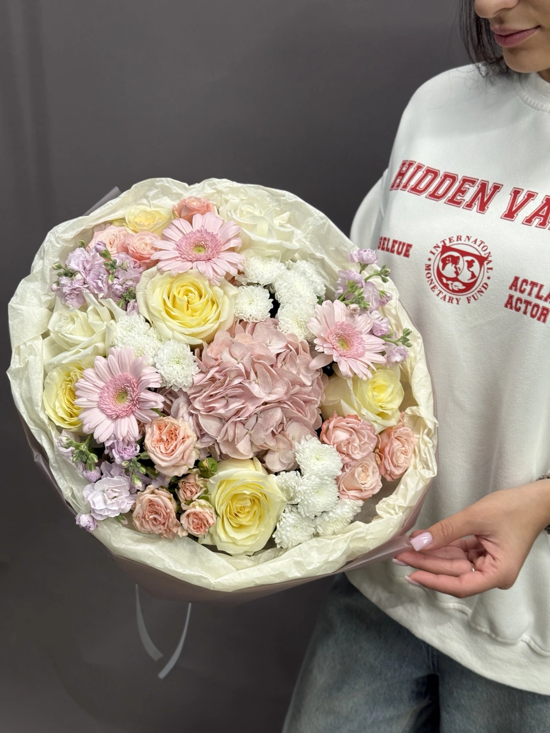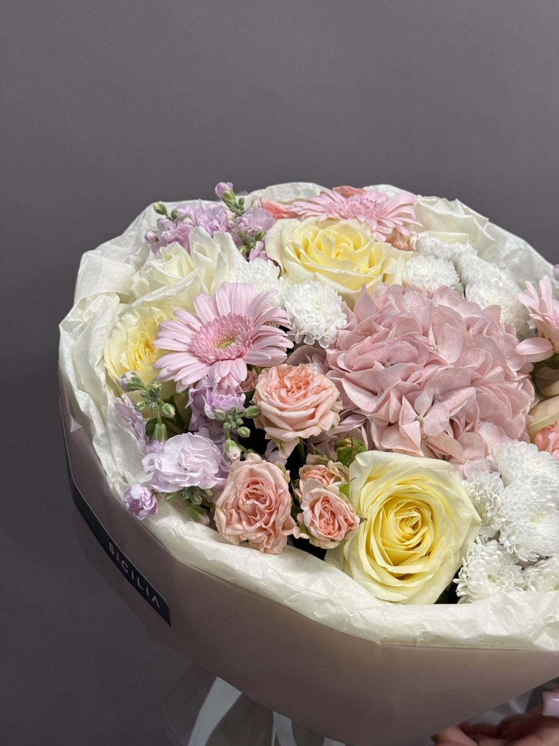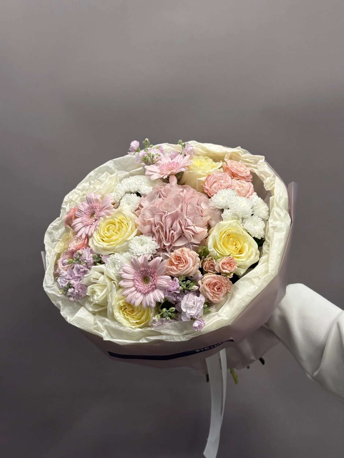Все букеты собираются подобными, с сохранением стилистики и цветовой гаммы.