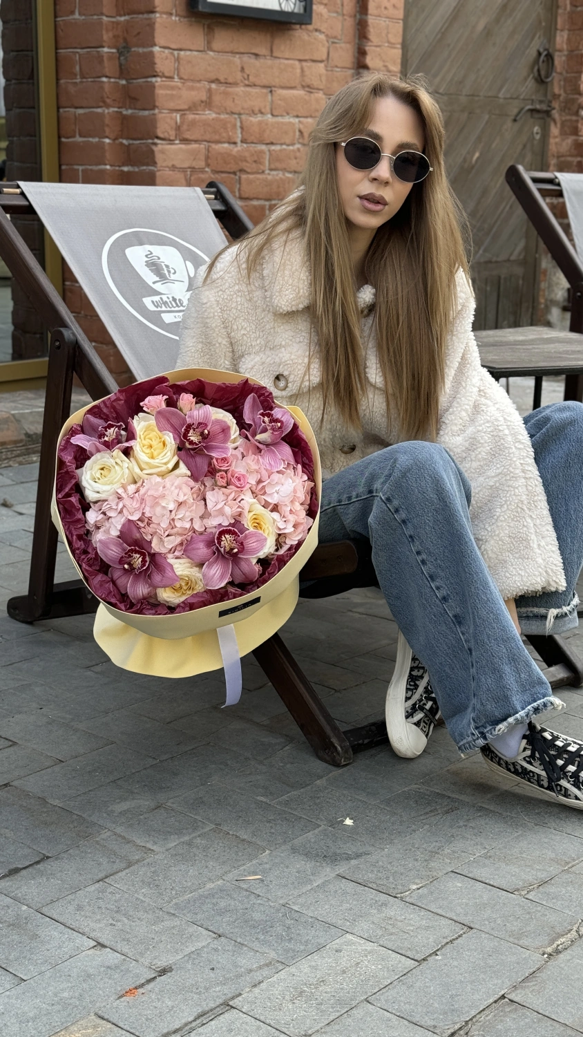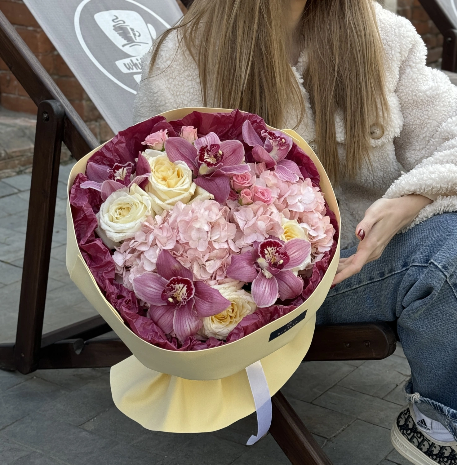 Все букеты собираются подобными, с сохранением стилистики и цветовой гаммы.