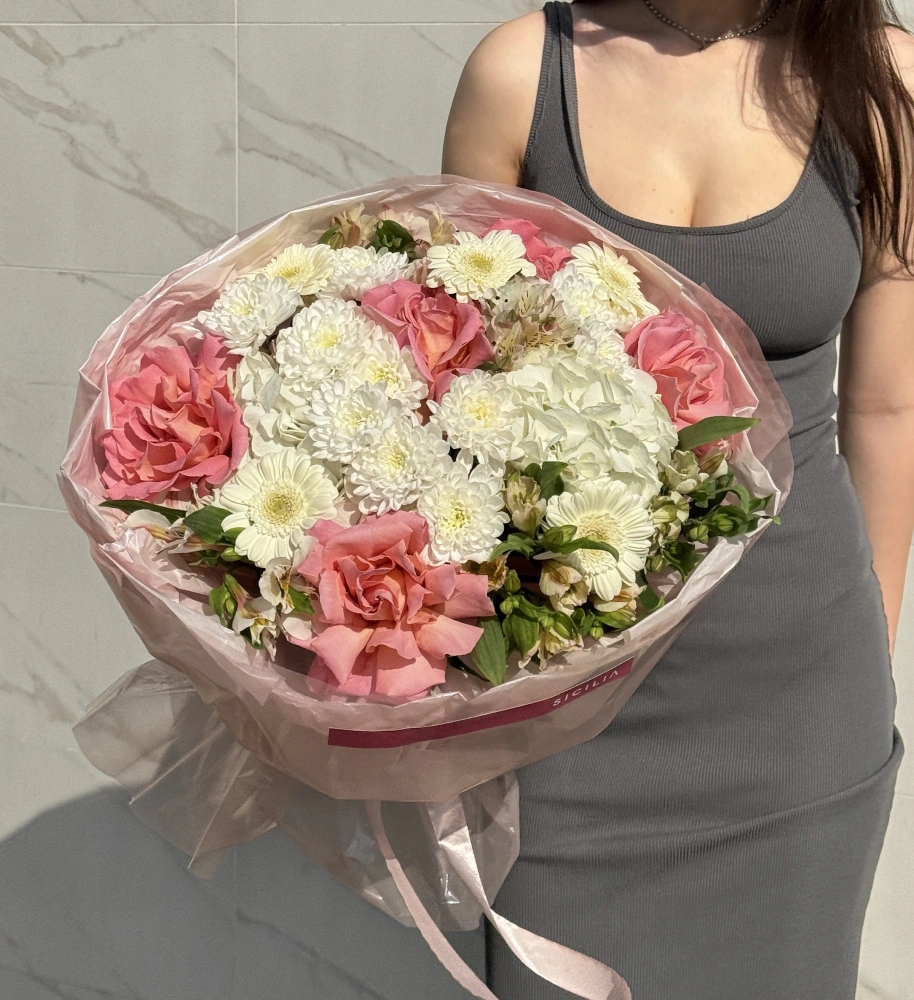 Все букеты собираются подобными, с сохранением стилистики и цветовой гаммы.