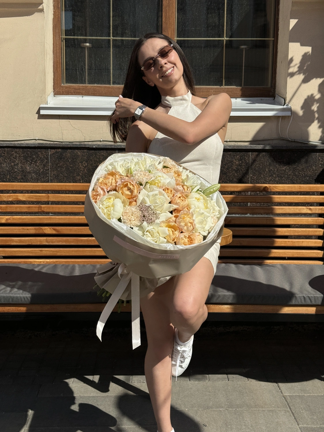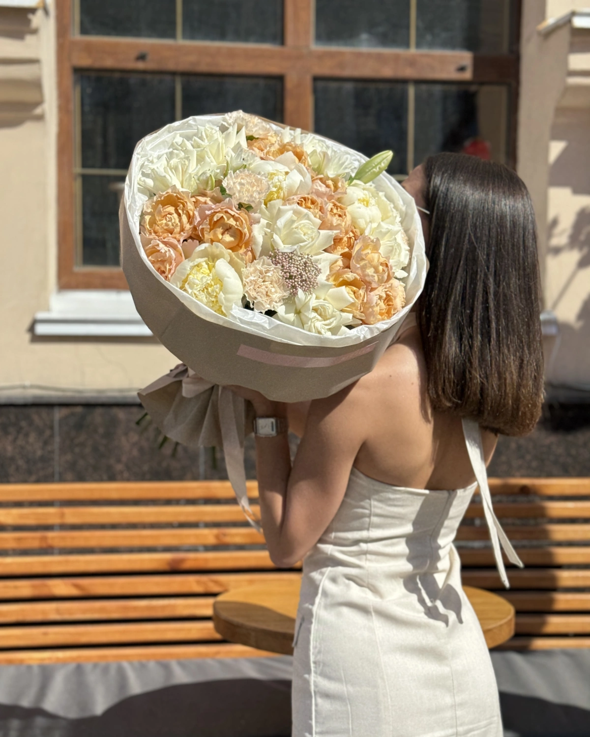 Все букеты собираются подобными, с сохранением стилистики и цветовой гаммы.