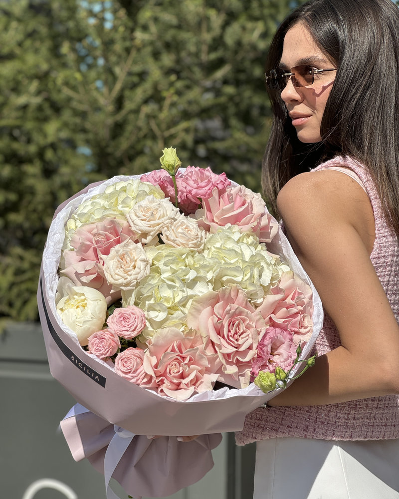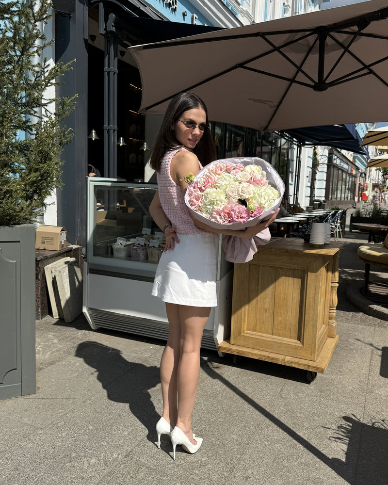 Все букеты собираются подобными, с сохранением стилистики и цветовой гаммы.
