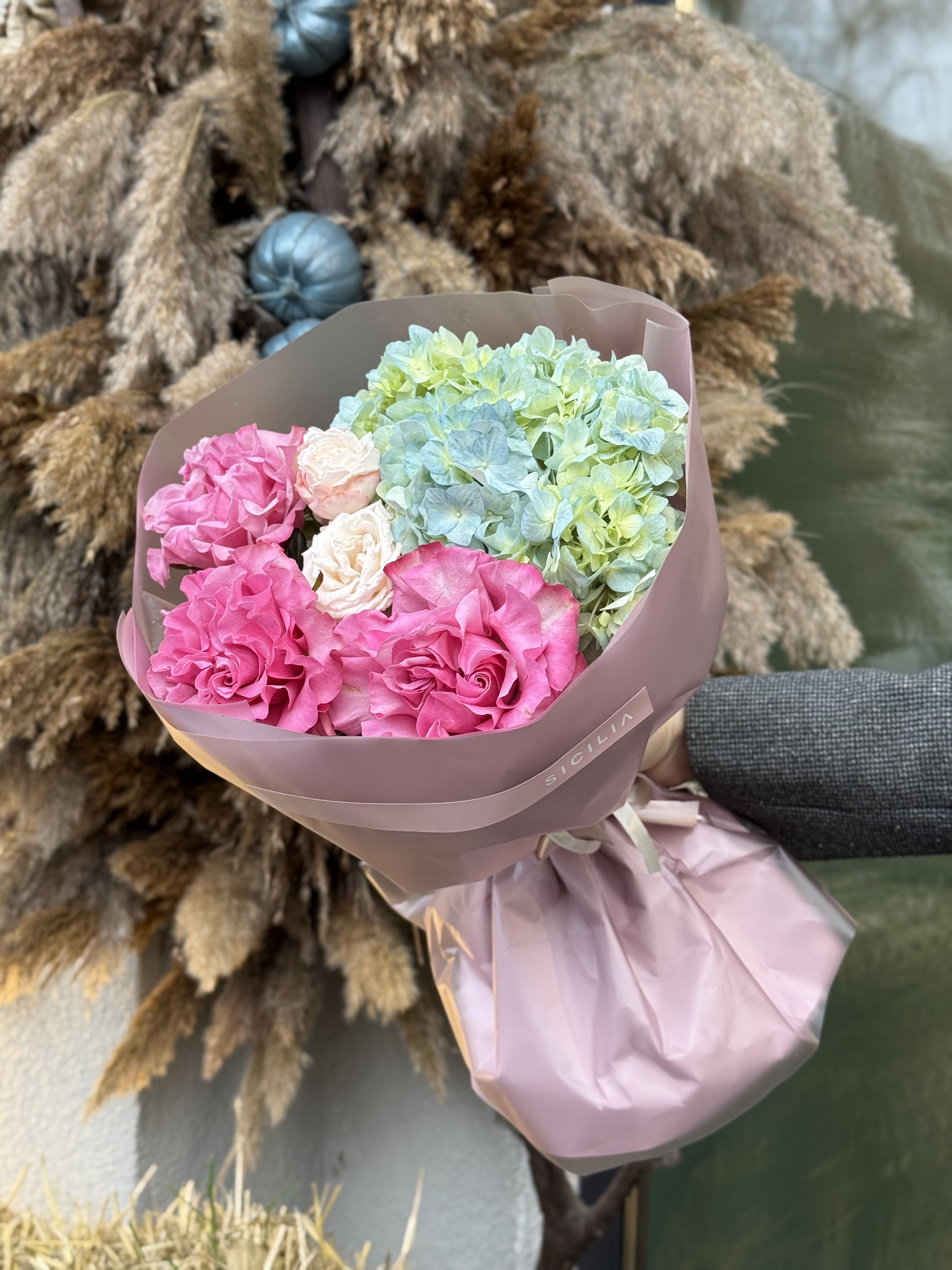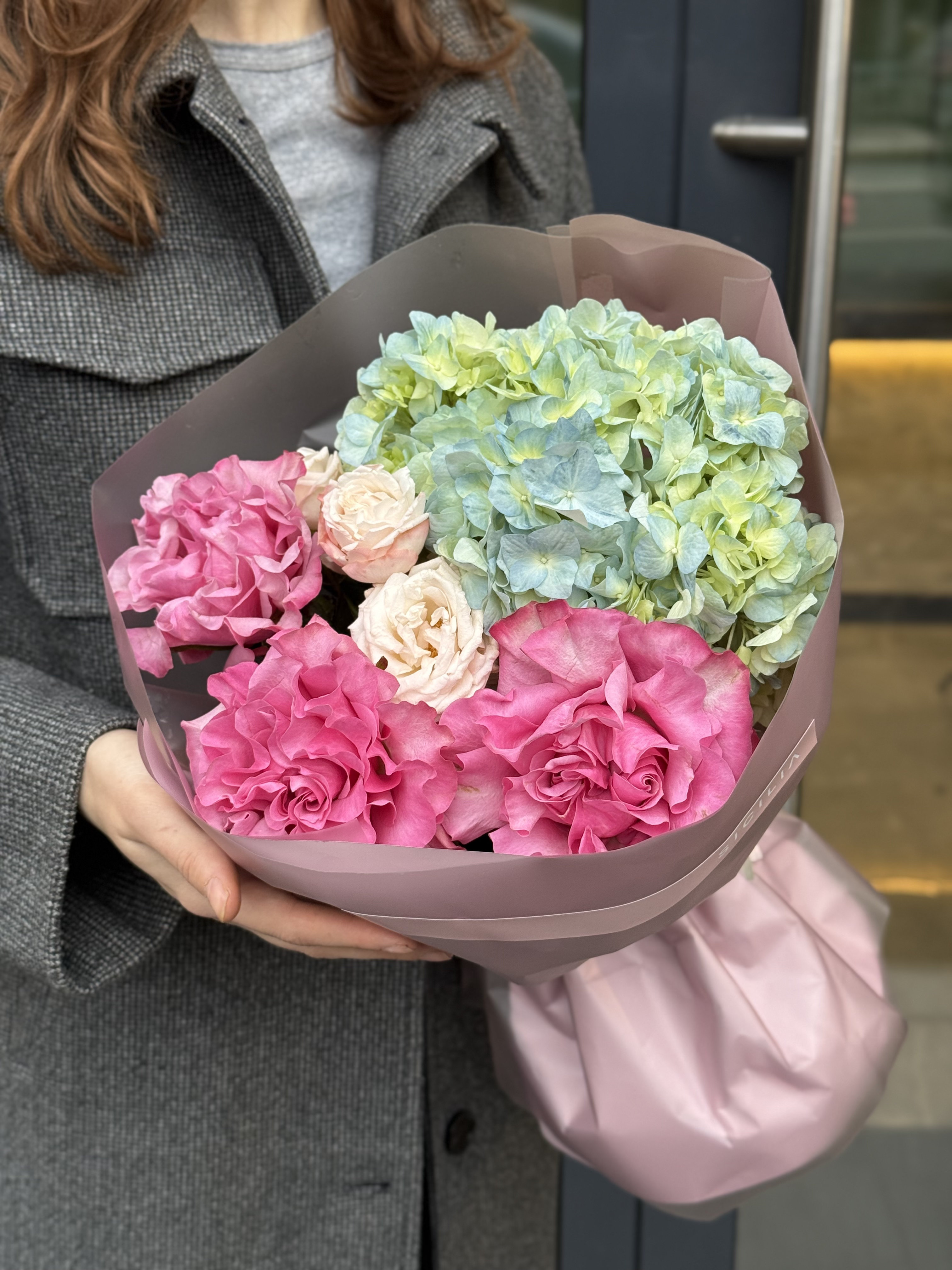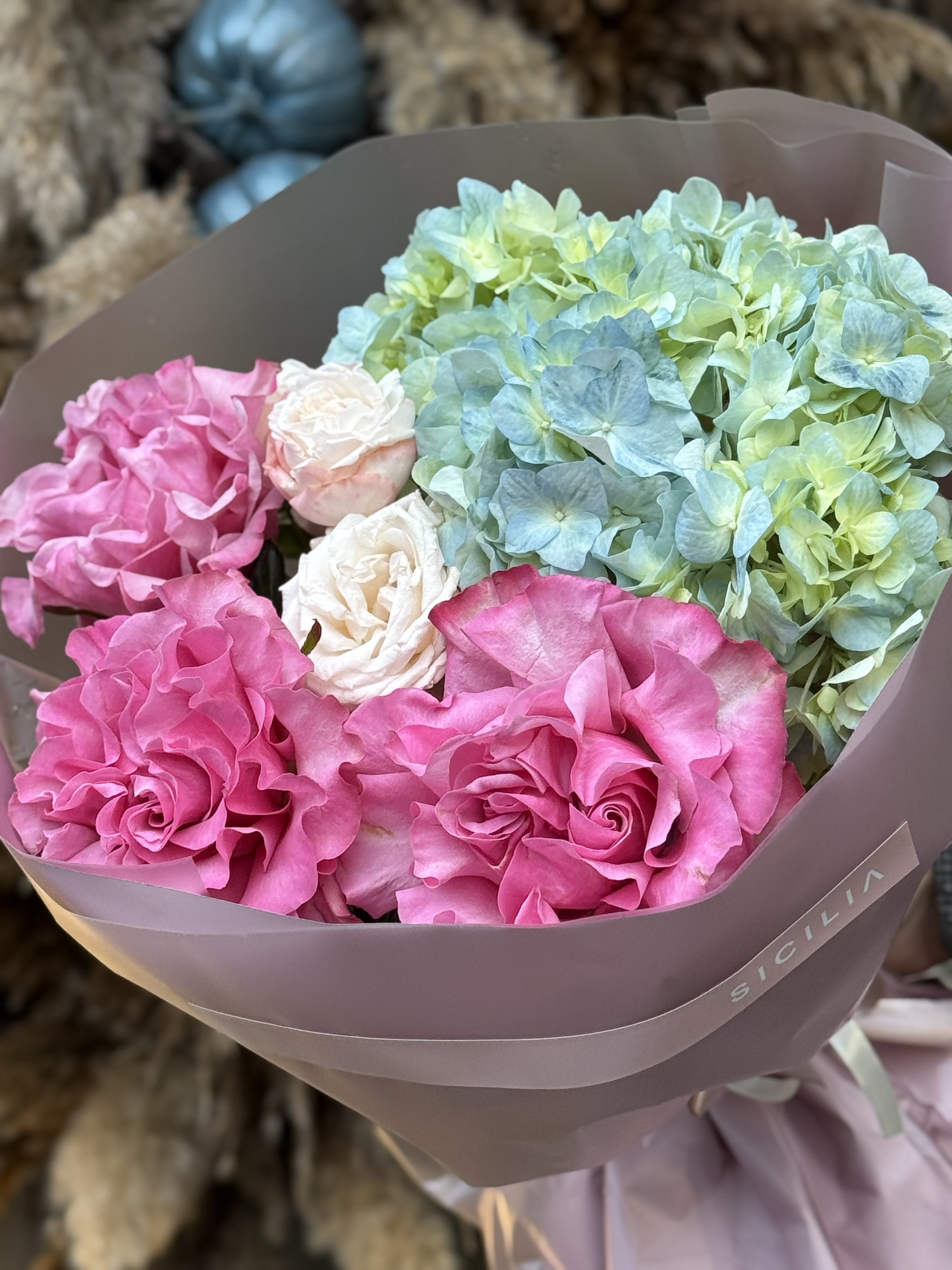 Все букеты собираются подобными, с сохранением стилистики и цветовой гаммы.