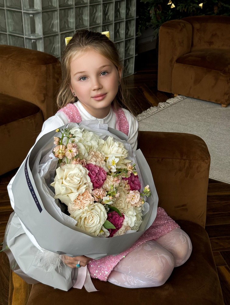 Все букеты собираются подобными, с сохранением стилистики и цветовой гаммы.