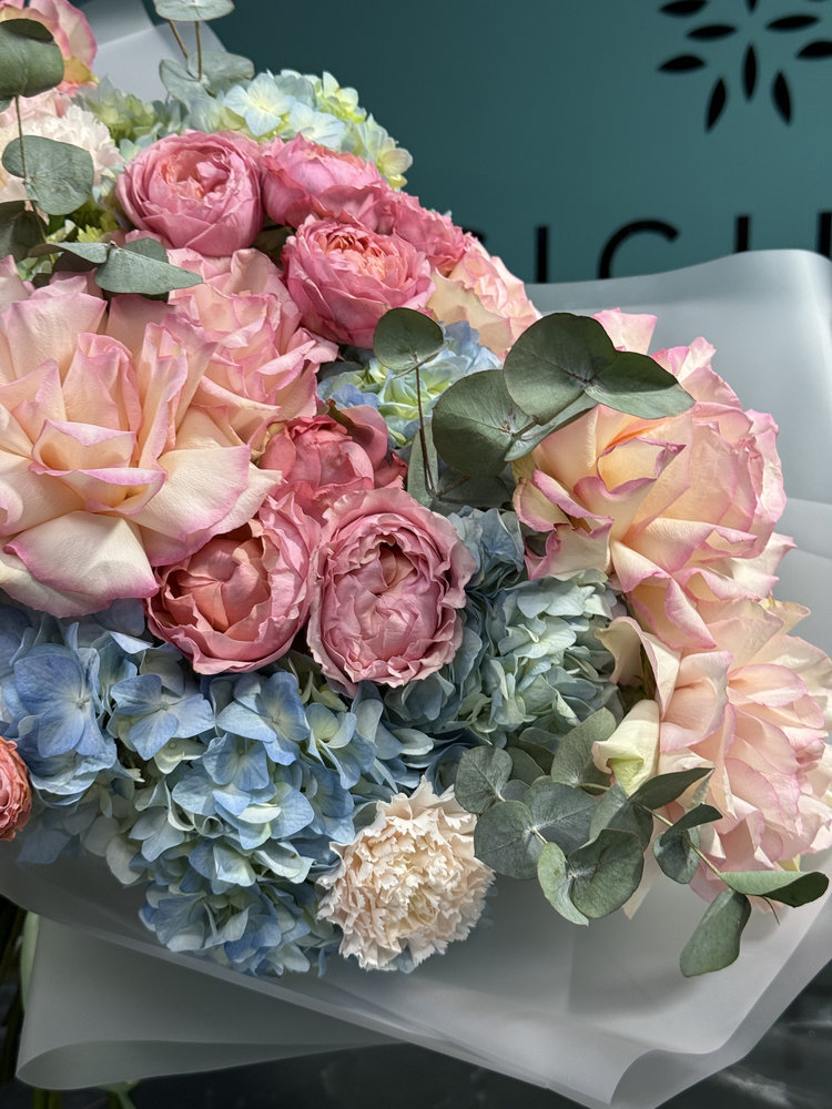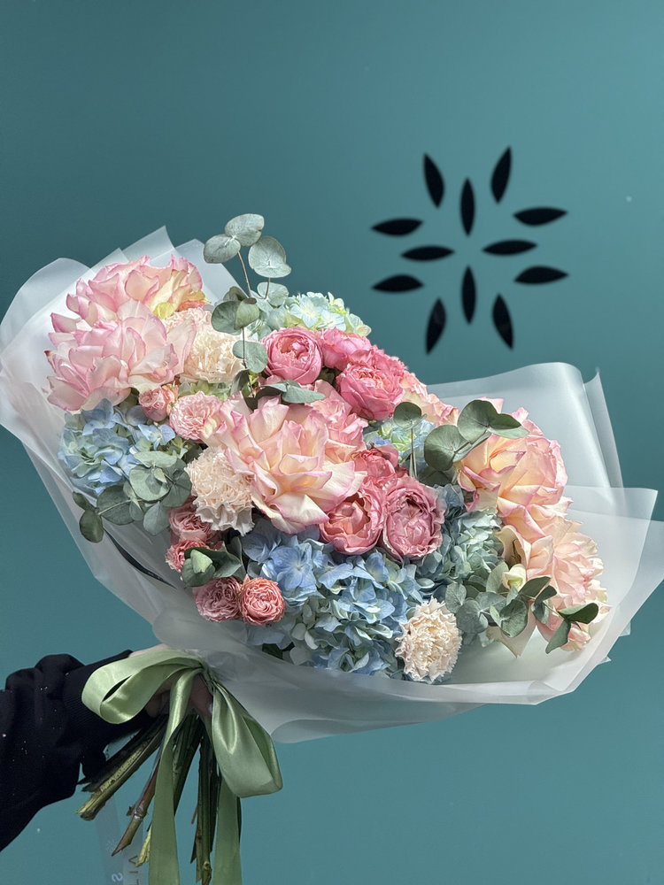 Все букеты собираются подобными, с сохранением стилистики и цветовой гаммы.