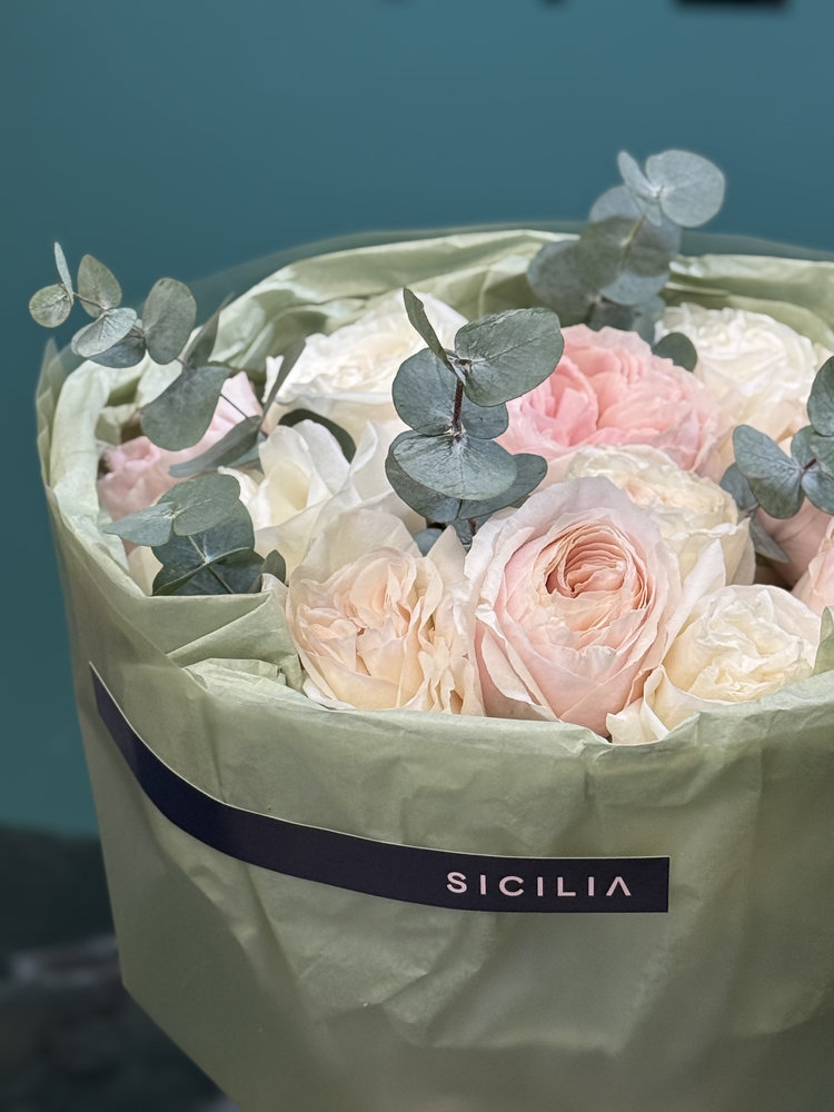 Все букеты собираются подобными, с сохранением стилистики и цветовой гаммы.