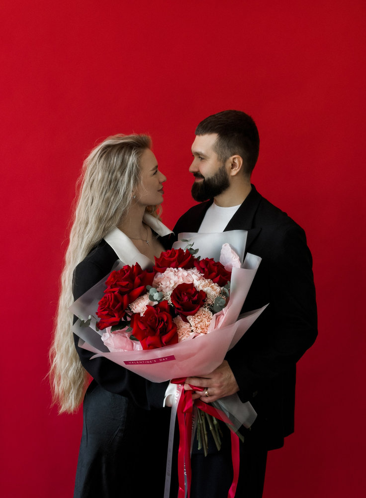 Все букеты собираются подобными, с сохранением стилистики и цветовой гаммы.