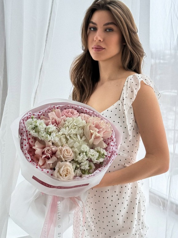 Все букеты собираются подобными, с сохранением стилистики и цветовой гаммы.