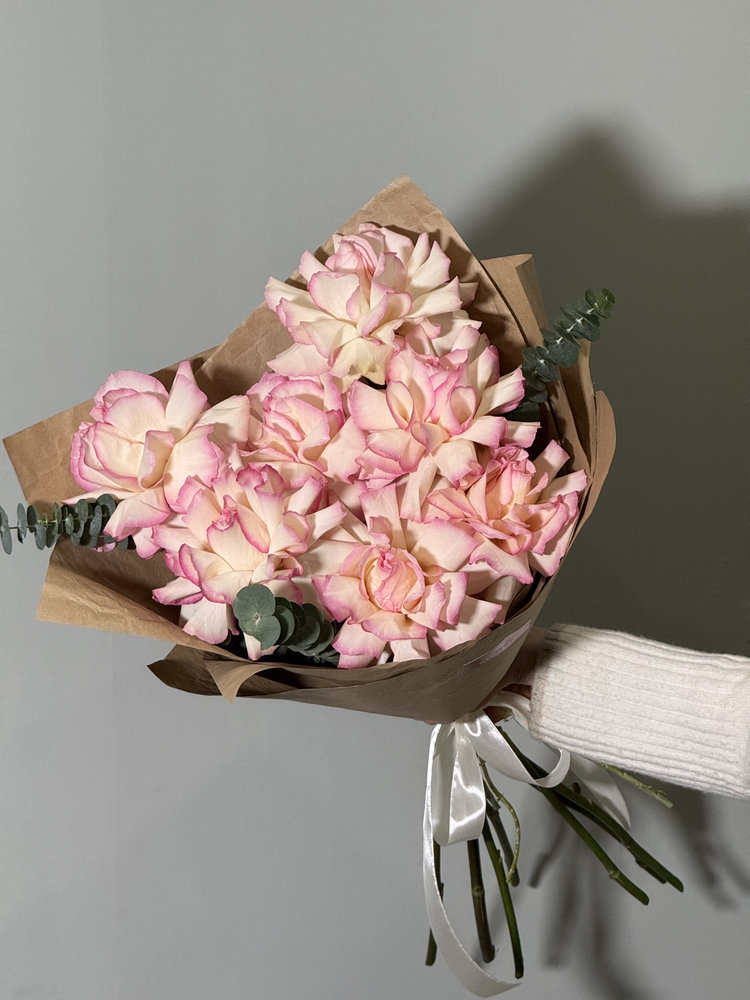 Все букеты собираются подобными, с сохранением стилистики и цветовой гаммы.