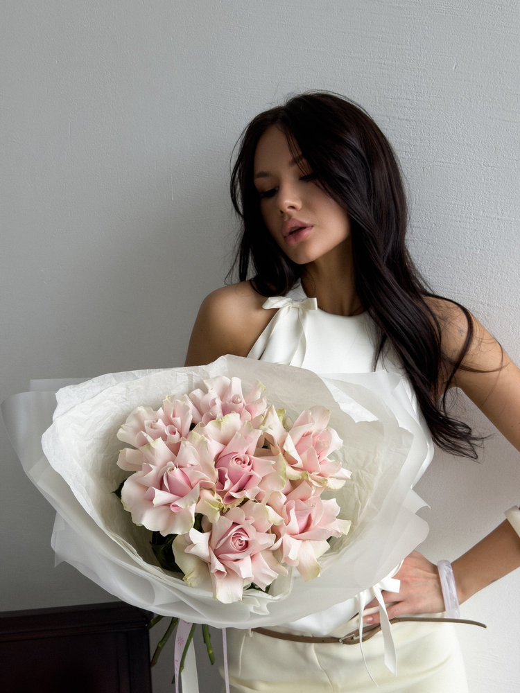 Все букеты собираются подобными, с сохранением стилистики и цветовой гаммы.